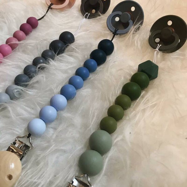 Speenkoord regenboog is gemaakt van onbehandelde houten en gecertificeerde siliconen kralen.